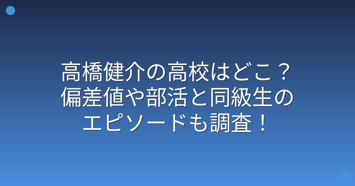 高橋健介の高校はどこ?偏差値や部活と同級生のエピソードも調査!