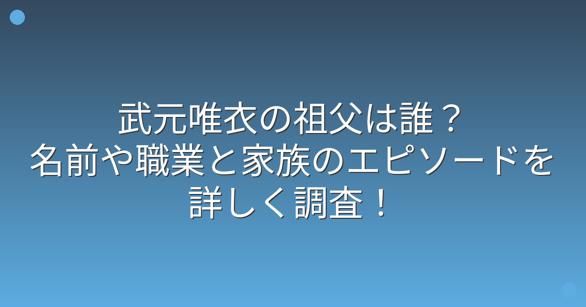 今回は、武元唯衣さんの祖父について、名前や職業、家族とのエピソードなどをお伝えしてきました。