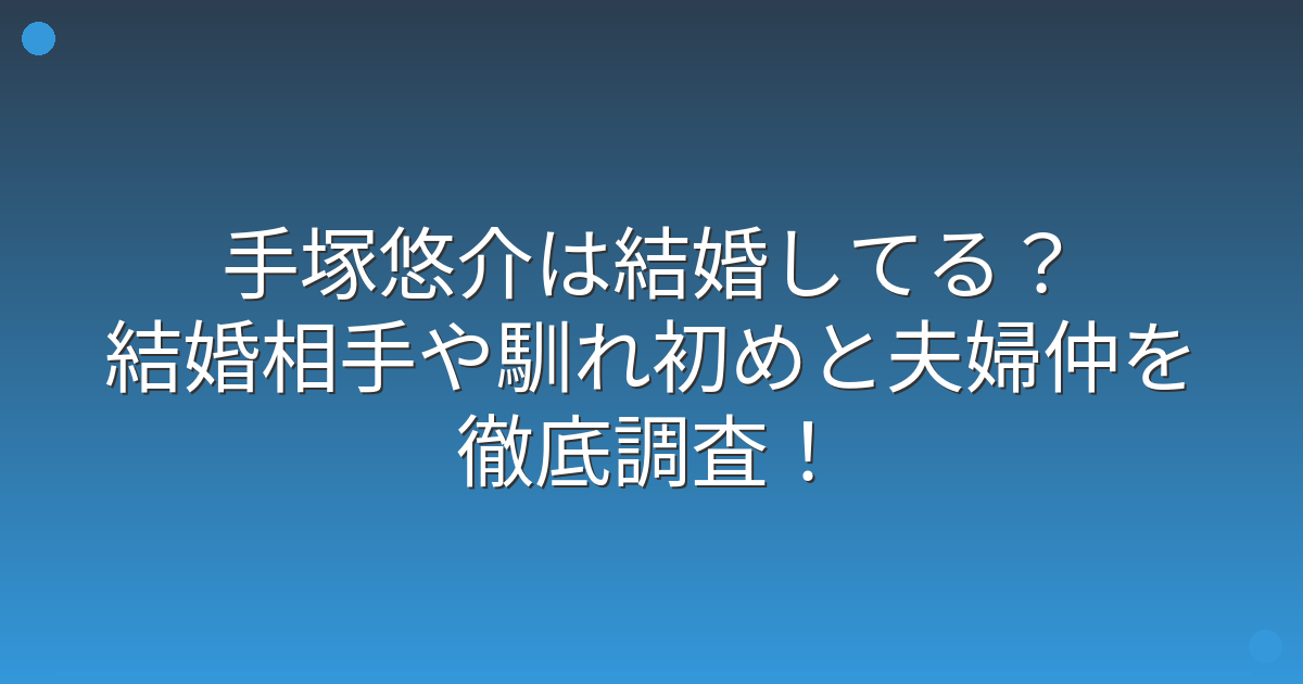 手塚悠介は結婚してる?結婚相手や馴れ初めと夫婦仲を徹底調査!