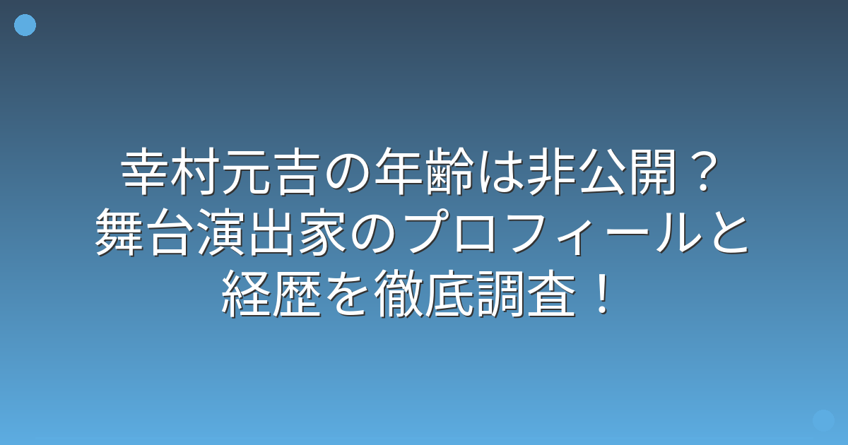 大学や専門学校で演劇を学び、20代半ばから後半にかけて演出家としてのキャリアをスタートさせる方が多いことを考えると、幸村元吉さんは現在30代後半から40代である可能性が高いと推測されます。
